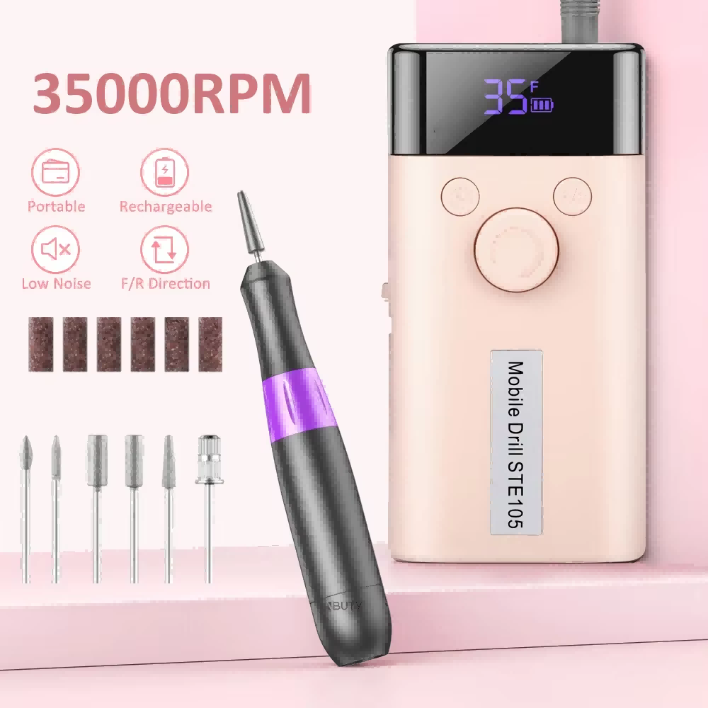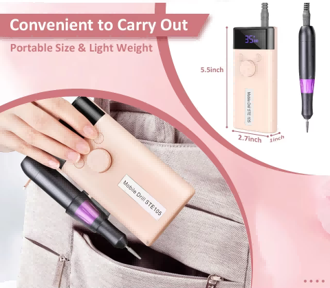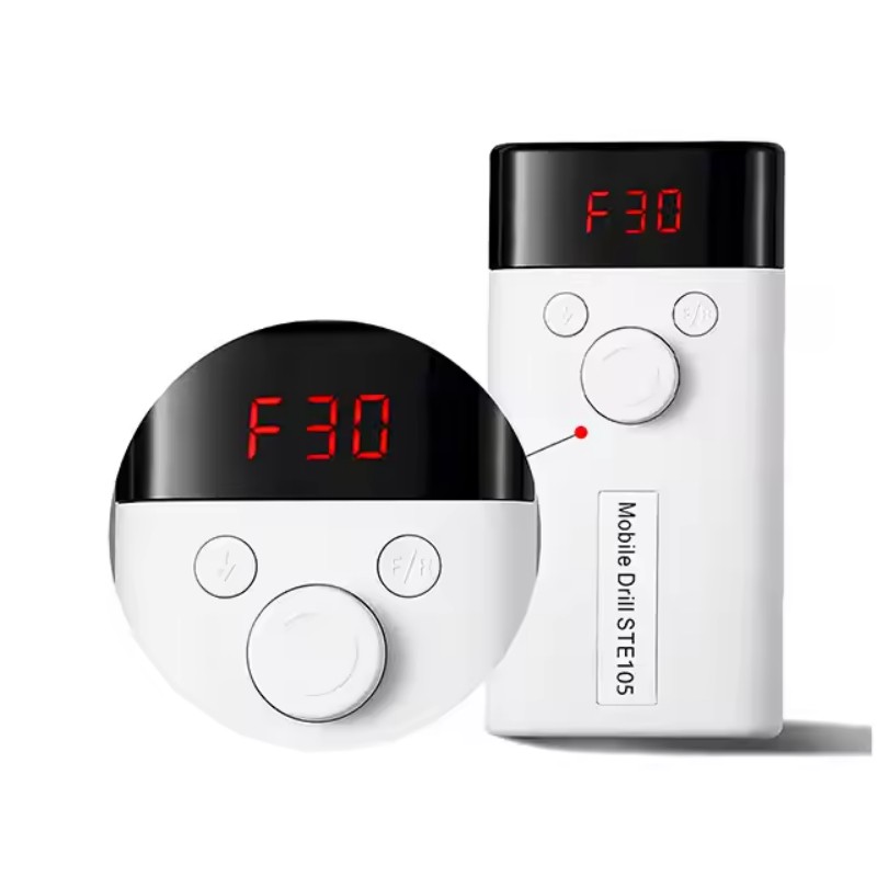 30.000 rpm-lik bu elektrik dırnaq cilalayıcısının displey dizaynında cəmi bir düymə ilə aktivləşdirmə üçün açma/söndürmə açarı və irəli/geri fırlanma, aşağıda tez doldurma yuvası, yuxarıda dəyişdirilə bilən qazma yuvası və müxtəlif ehtiyacları ödəmək üçün üç mövqeli tənzimlənən sürət var.