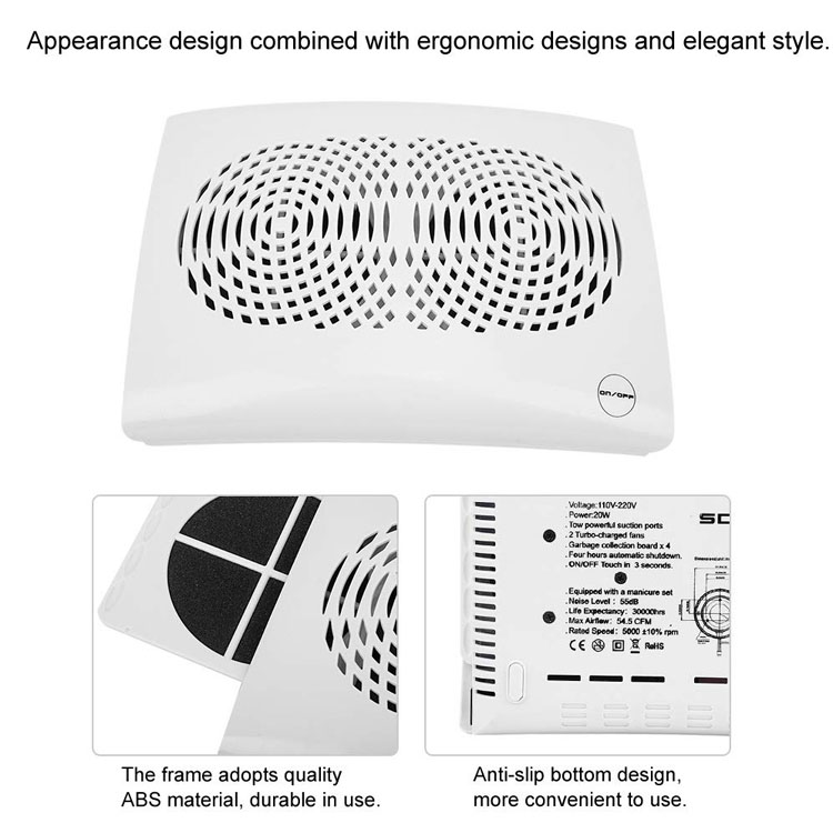 1.Dırnaqların doldurulması və ya cilalanması zamanı yaranan dırnaq tozunu toplamaq üçün güclü vakuum udma istehsal edə bilən Gelish Doldurulan Dırnaq Toz Toplayıcısının 20w güclü fanatı.