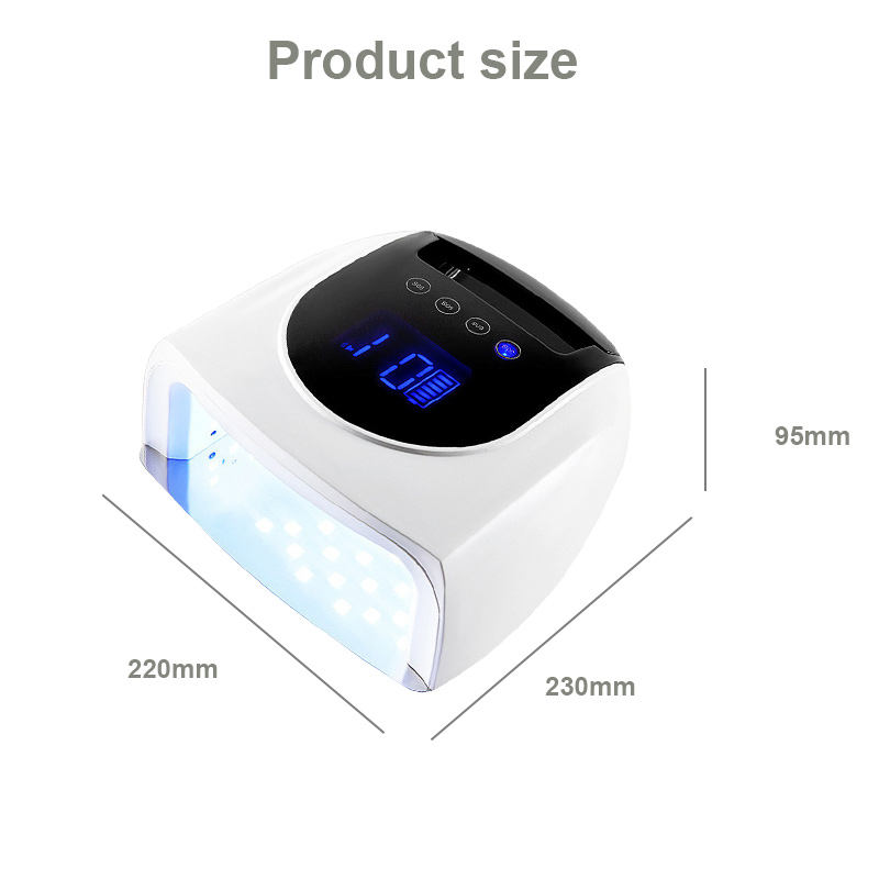 Məhsul büzüşmədən hətta yapışqan qurumasını təmin edir. İkili işıq mənbələri əl rəngsizləşməsi və göz gərginliyinin qarşısını almaq üçün zərif istilik, həm əllərinizə, həm də ayaqları üçün uyğun sürətli qurutma nəticələrini təqdim edir.