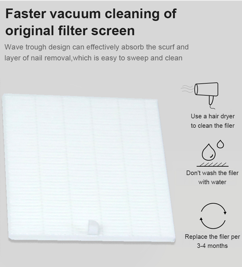 Filtri təmizləmək üçün məhsulu təmizləmək üçün çıxarıla bilər, süzgəc fırçanın rahat və sadə istifadəsi asan və təmizlənən süzgəcdən istifadə etmək üçün süzgəcdən çıxarıla bilər.