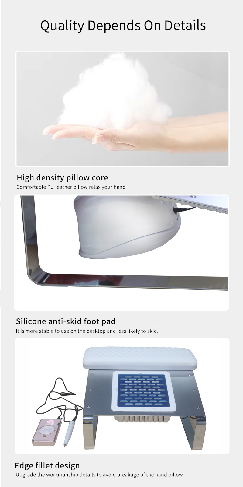 Dırnaq zibilinin güclü adsorbsiyasının güclü sızması, tezgahın təmiz və səliqəli olmasına baxmayaraq, sürətli vakuumun toz yüksək gücü daha səmərəli olmur.