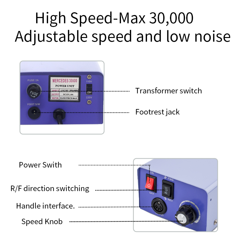 1, Tənzimlənən sürət, güclü motor, yüksək sürətli zımpara, sonsuz düyməli real vaxt sürət tənzimlənməsi.