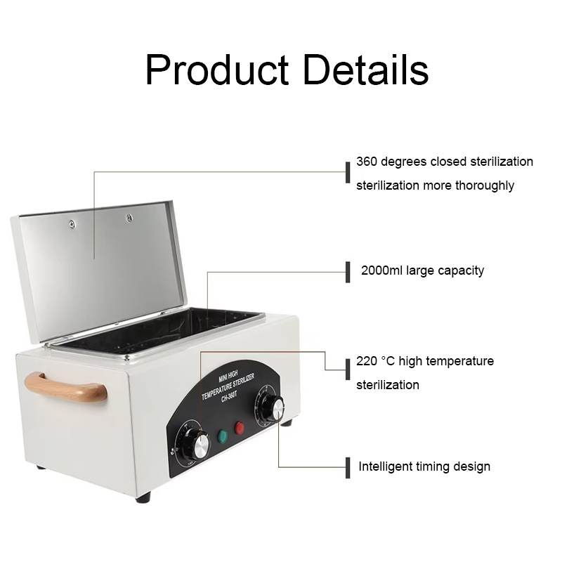 Bu sterilizator, ilk növbədə dezinfeksiya üçün yüksək temperaturdan istifadə edərək istilik halqası ilə istilik yaradır.