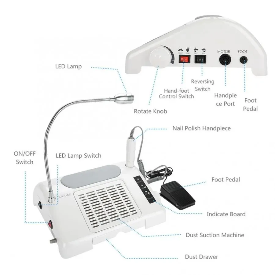 Manikürün məhsul təfərrüatları 5-in-1 96w vakuum zımpara işıqlandırma əl yastığı hamısı bir maşın