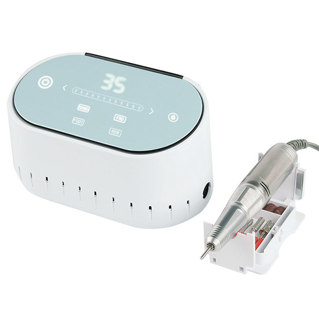 Yüngül və Portativ. Dırnaq Dırnaq Dəsti Elektrik Böyük Led Ekran 60w 35000rpm təbii dırnaqlar və süni dırnaqlar üçün istifadə edilə bilər. Çox istifadə: oyma, marşrutlaşdırma, daşlama, itiləmə, zımpara, cilalama, qazma və s. Dəyişdirilməsi asan olan 6 isteğe bağlı standart metal bit və 6 zımpara başlığı olan dəstlər. Peşəkar istifadə, dırnaq suyu və ya evdə istifadə üçün uyğundur.
