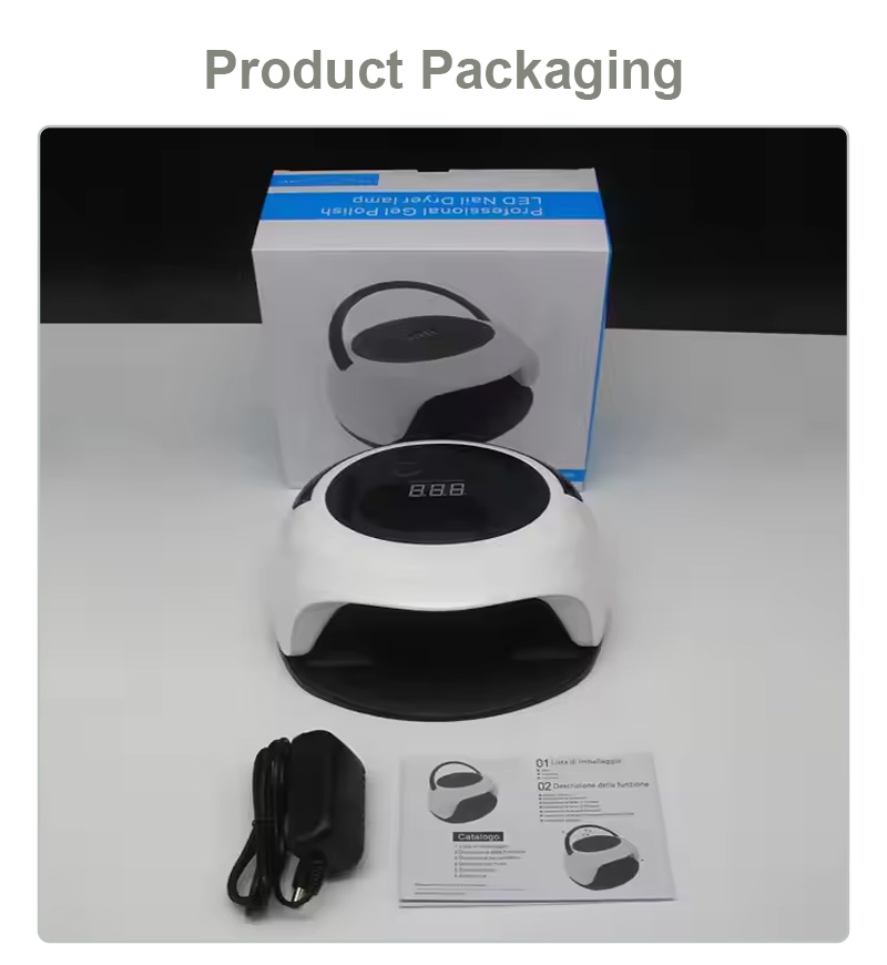 Avtomatik sensor funksiyası olan dırnaq qurutma lampası yapışqanın büzülmədən bərabər qurumasını təmin edir. Onun ikiqat işıq mənbələri əllərin rənginin dəyişməsinin və gözlərin yorğunluğunun qarşısını almaq üçün yumşaq isitmə təmin edir, həm əllər, həm də ayaqlar üçün uyğundur və olduqca sürətli qurutma nəticələri verir.