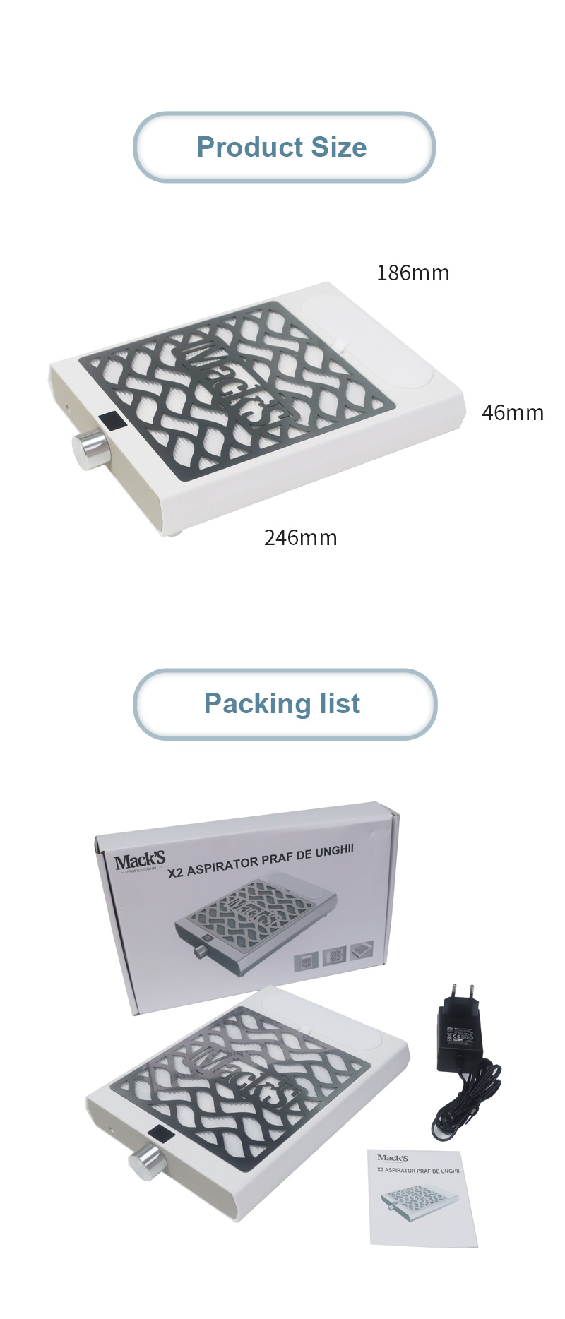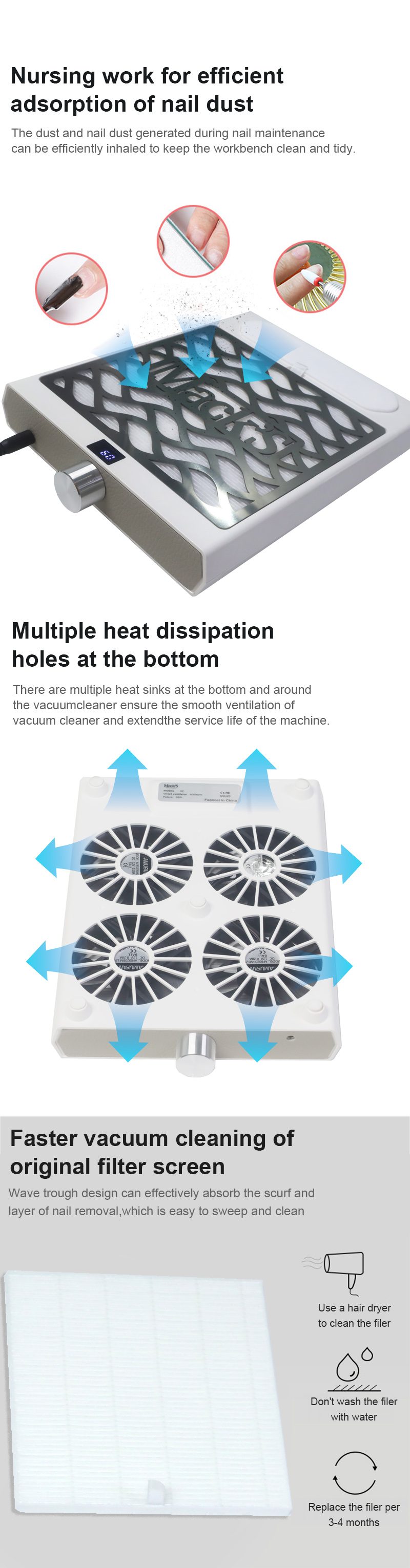 Dırnaq zibilinin güclü adsorbsiyasının güclü sızması, tezgahın təmiz və səliqəli olmasına baxmayaraq, sürətli vakuumun toz yüksək gücü daha səmərəli olmur.