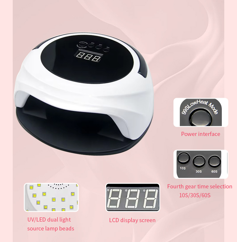 Məhsul büzüşmədən hətta yapışqan qurumasını təmin edir. İkili işıq mənbələri əl rəngsizləşməsi və göz gərginliyinin qarşısını almaq üçün zərif istilik, həm əllərinizə, həm də ayaqları üçün uyğun sürətli qurutma nəticələrini təqdim edir.