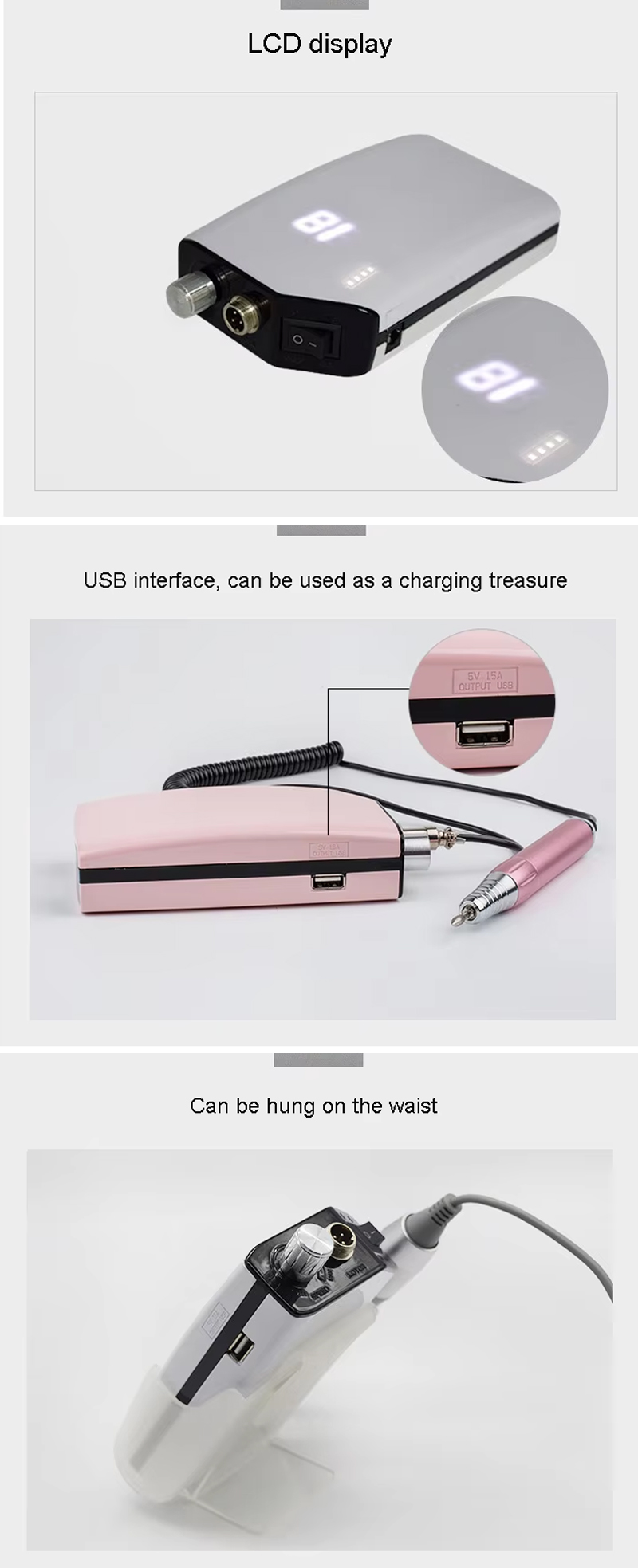 Güclü Motor 65w 35000rpm ilə Elektrikli Portativ Dırnaq Dırnaq Dəsti