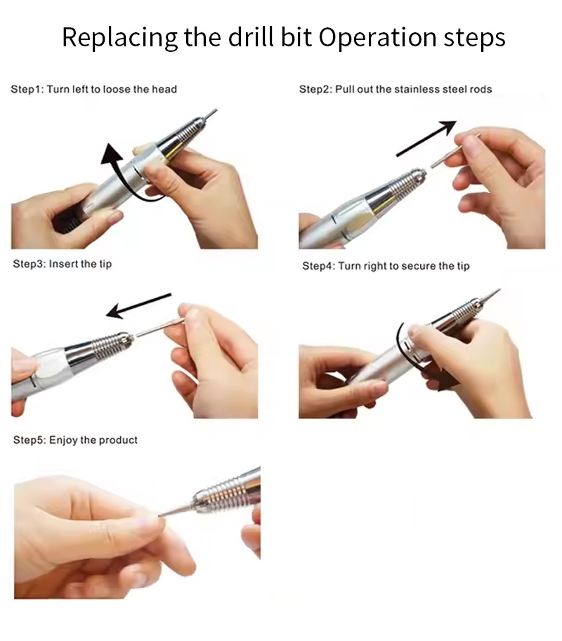 Bu peşəkar portativ dırnaq qazma maşını 35,000 rpm dəyişdirmə qazma əməliyyat üsulu, yəni qoşmaq və çıxarmaq, asan və rahat, dəyişdirmə tamamlandıqdan sonra istifadə edilə bilər.