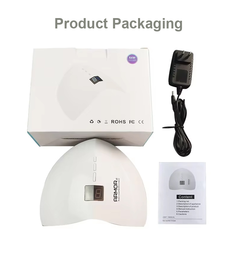 Məhsul büzüşmədən hətta yapışqan qurumasını təmin edir. İkili işıq mənbələri əl rəngsizləşməsi və göz gərginliyinin qarşısını almaq üçün zərif istilik, həm əllərinizə, həm də ayaqları üçün uyğun sürətli qurutma nəticələrini təqdim edir.