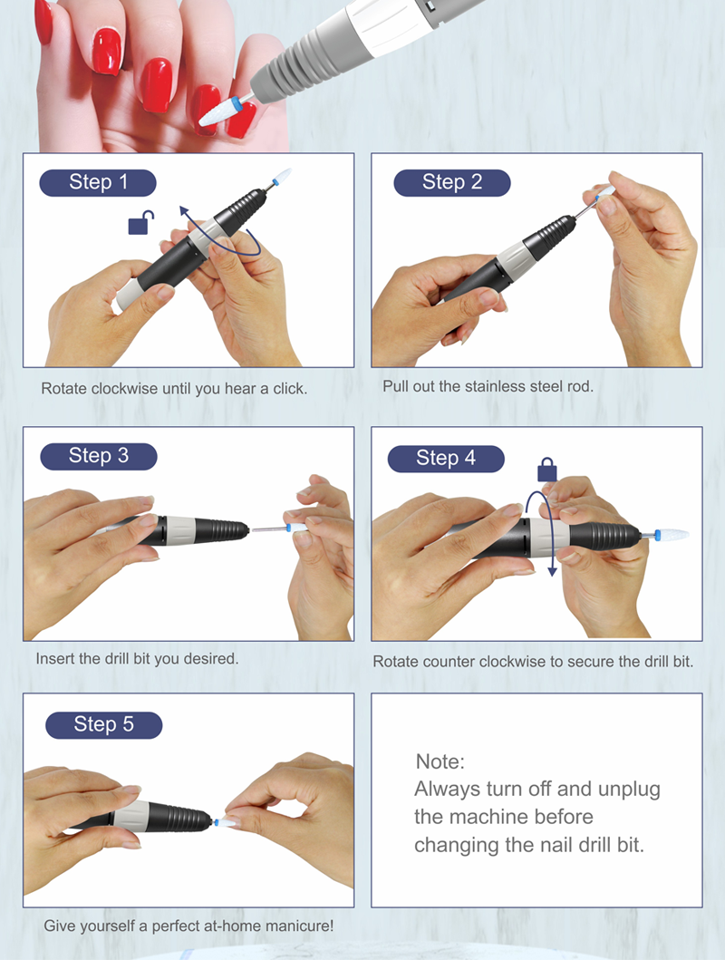 Güclü Motor 65w 35000rpm ilə Elektrikli Portativ Dırnaq Dırnaq Dəsti