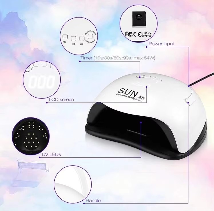 3)Təkrarlanan dırnaq lak lampası 54 vatt təkrar doldurulan məhsul səthi ekran dizaynı, vaxt timer rejimi müvafiq olaraq 10-30 və 60s parametrləri təyin edilə bilər.